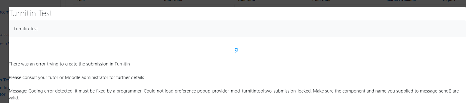 The error shows after a user makes a submission via a ‘Turnitin Assignment 2’ submission activity point.